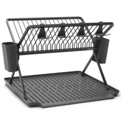 The Brabantia Foldable Large Dish Drying Rack is will happily hold your dishes and cutlery to dry. The drying can hold up to 17 plates as well as your cutlery and delicate wine glasses. The draining rack has a drip tray for the rack to sit on to stop your worktops from getting wet and can be positioned to drain directly into the sink. Its foldable design makes it easy to store away in a compact fashion when not in use.