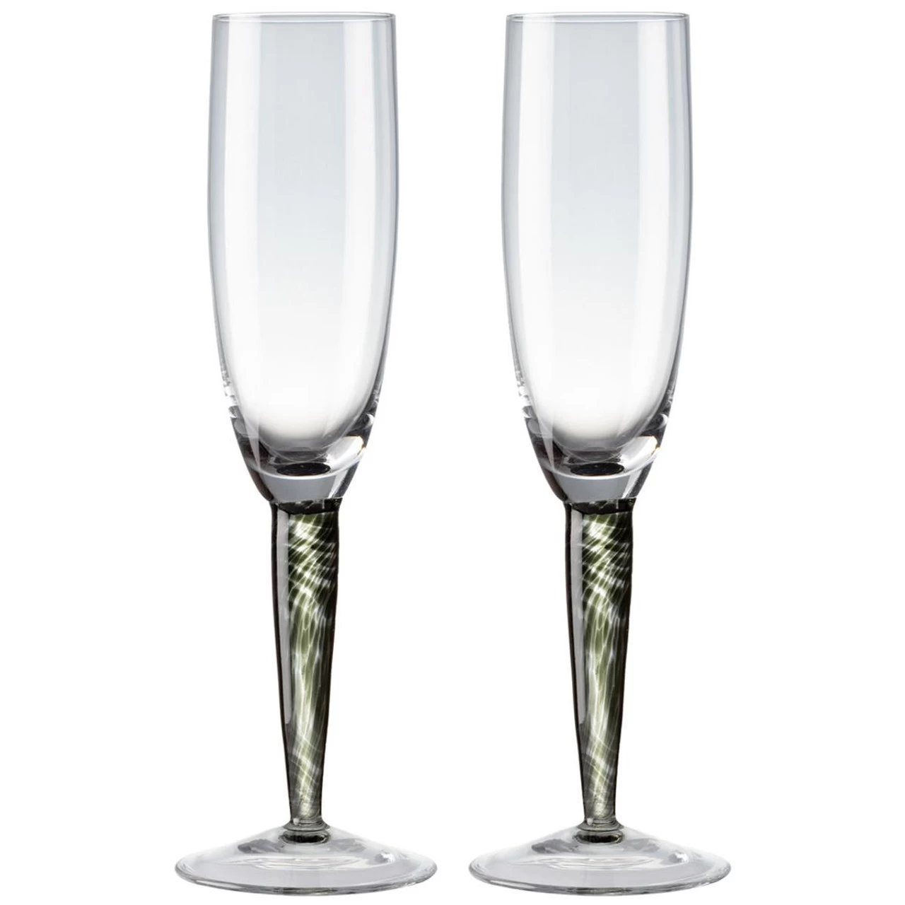 Denby Jet Champagne Flute Pack Of 2 designed to complement the Jet tableware collection. This set of glassware is made from high quality mouth-blown glass with eye-catching stems to match the smoky design of the Jet dinnerware. Denby glassware is dishwasher safe although hand washing is recommended.