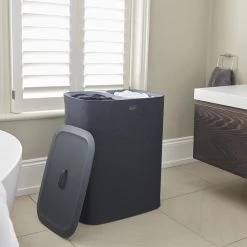 The Joseph Joseph Tota 90-Litre Laundry Separation Basket helps you make the chore of doing laundry a little less taxing. This laundry basket features two compartments for you to separate your lights from darks, making washing all that easier. Each compartment has a 45-litre capacity, with removable tote bags that have easy-carry handles and a helper handle on the bottom to make emptying the bags easier. Please note this laundry bin comes flat-packed with full assembly instructions.