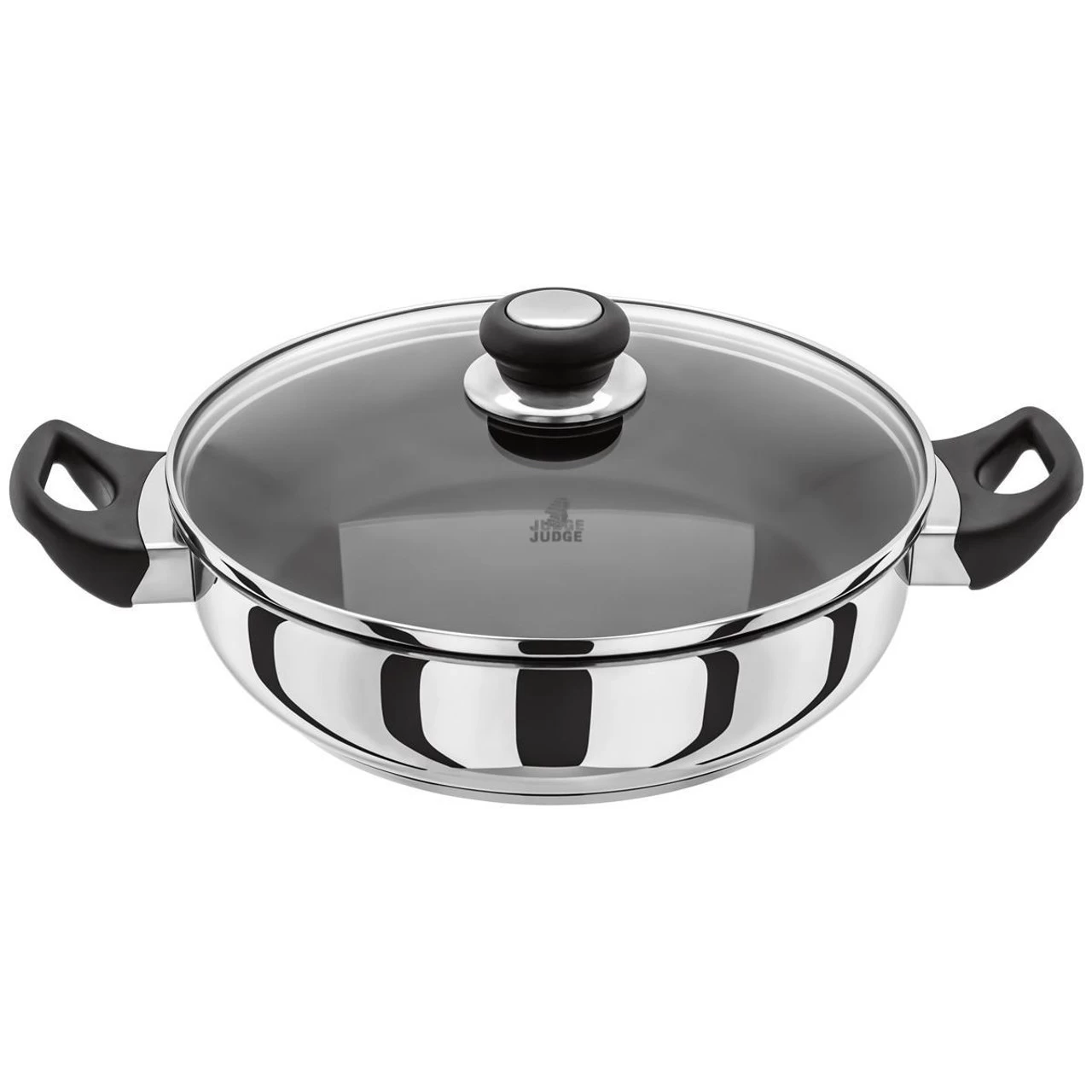 The Judge Vista Non-Stick Sauteuse pan offers exceptional cooking with even heat distribution throughout as well as the best non-stick for easy release of food. The stainless steel pan also features stay-cool handles and a shatterproof vented glass lid to help lock in moisture.