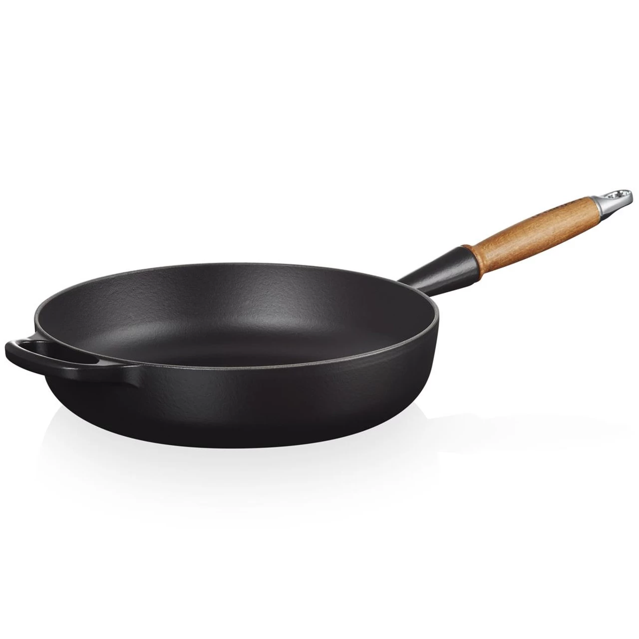 28cm Cast Iron Saute Pan With Wooden Handle Features
