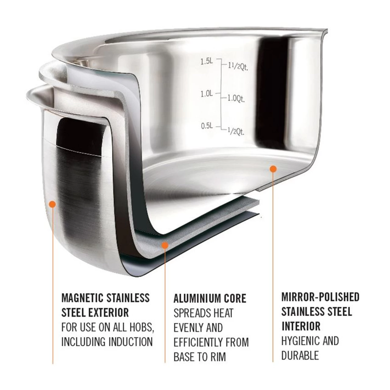 16cm 3 Ply Stainless Steel Saucepan With Lid Features