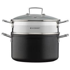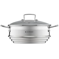The Le Creuset 3-ply Large Multi-Steamer With Glass Lid is a clever stepped-base design. The multi-steamer features a heat-resistant glass lid and is ideal for cooking healthy poultry, fish, vegetables and desserts. The three pans vary in diameter and include a 20cm, 22cm and 24cm. The multi-steamer is made from premium quality stainless steel and is dishwasher safe so extremely easy to clean.