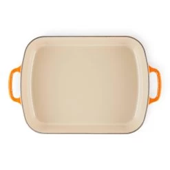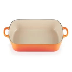 The signature roaster features two large handles to help you transfer the dish directly from the oven to the table with ease (using oven gloves, of course). The eye-catching, bright, enamelled glaze will wow your dinner guests, so you don’t need to transfer the contents into a serving dish to make a statement, and because cast iron has such excellent heat retention, your delicious roasted goodness will stay hotter for longer! This versatile enamelled cast iron roaster helps you cook up a storm, it’s rectangular shape is perfect for all sorts of dishes, from meat and potatoes to homemade lasagne and crumbles.