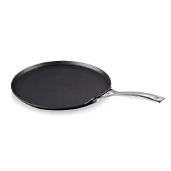 The Le Creuset Toughened Non-Stick Crepe has a 6-layer hard anodised aluminium construction, it’s very tough and durable and even better, it’s so easy to clean. Simply let the pan cool down fully and simply wipe the pan clean with a sponge. If you have some stubborn residue left on the pan, once it’s cool, add some warm soapy water, let it soak and it will lift off with ease.