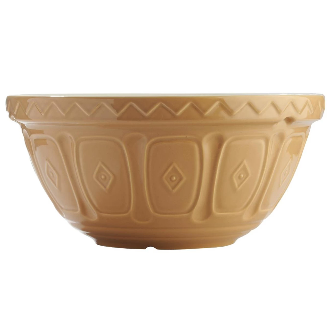 First developed in 1901 but still just as relevant and delightful today, these Cane mixing bowls from Mason Cash feature a distinct patterned Aztec-style exterior that has been designed to help the baker grip and tip the bowl. Made from earthenware, this bowl is light to hold but still sturdy.