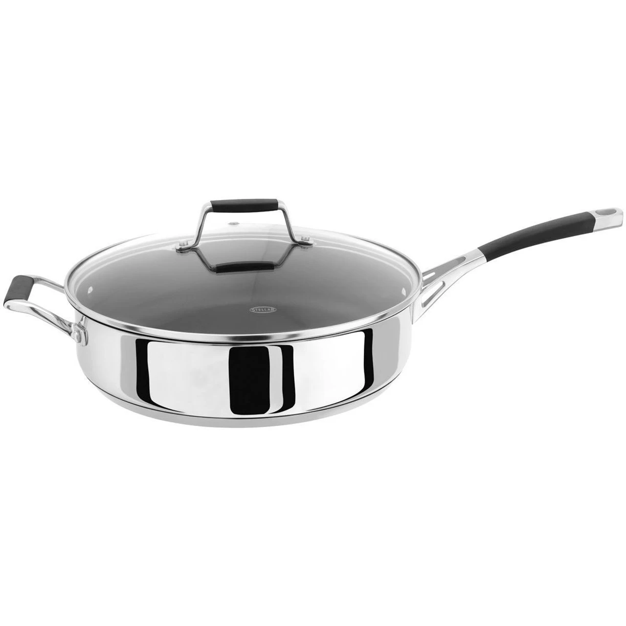 The Stellar Induction Non-Stick Saute Pan is crafted from high-quality 18/10 stainless steel and with its hot forged base which allows for even heat distribution. The saute pan is designed for maximum performance on induction style hobs whilst still being suitable for all hob types. The pan is secure to handle thanks to the silicone grips on the cast stainless steel handles. The pan is coated in a durable triple-layer Teflon pro platinum non-stick coating which makes for an easy to clean pan.